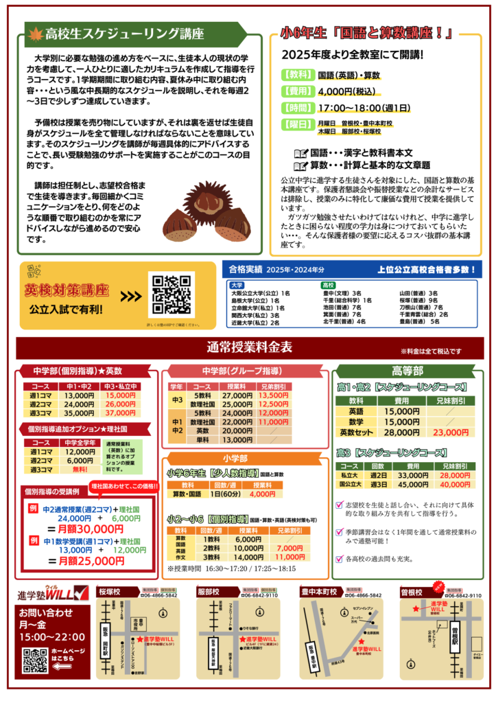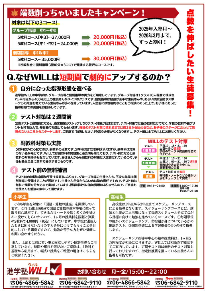 進学塾WILLへの入塾をご検討いただいている保護者様へ ⇒⇒⇒
